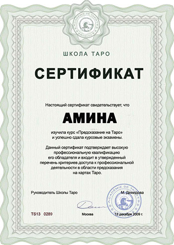 Общался с Аминой по телефону. Ничего лишнего не говорит, всё по существу. Рассказала многое из моего прошлого, ещё погадала на будущее. Способы гадания разные, можно выбирать какой хочешь. Удобно, что не обязательно надо присутствовать рядом, у меня просто нет такой возможности.